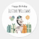 Sticker Rond Animal de fête, zèbre avec des cadeaux et des ball