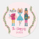 Un autocollant de Noël mignon et festif avec l'illustration dessinée à la main du chat, du chien et de la souris comme personnages de ballet de noisette. L'arrière - plan est rose.