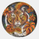 Montrez votre signe chinois Zodiac Animal avec cette année magique des autocollants Tiger.Art numérique peinture d'un tigre avec dragon oriental et entouré de Lys Tiger. Copyright artistique à Erin Cooper