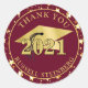 Autocollant moderne de remerciement de fin d'études avec des étoiles marron et or accentuant une casquette de graduation dorée et personnalisée avec le nom de votre diplômé et l'année de la promotion. Contactez le concepteur via Zazzle Chat ou makeitaboutyoustore@gmail.com si vous souhaitez que ce design soit modifié, sur un autre produit ou que vous souhaitiez des articles coordonnés.