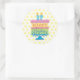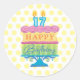 Joyeux gâteau coloré d'anniversaire avec des autocollants ronds arrière - plans à pois jaunes. Customisé pour un 17ème anniversaire. Scellez vos invitations ou merci enveloppes. Utiliser comme étiquettes pour traiter les sacs. Ajouter à la ferraille des pages de livres et des photographies pour les accents. Utilisez ces autocollants pour mettre la touche finale à tous vos souhaits d'anniversaire.