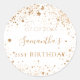 Un autocollant pour une fête d'anniversaire girly et glamour de 21e (ou tout âge). Un élégant arrière - plan blanc avec de la poussière de parties scintillant en faux or foncé. Personnalisez et ajoutez une date, un nom et un âge de 21 ans. Le nom est écrit avec un script de style moderne écrit à la main.
