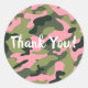 Sticker Rond Anniversaire Camouflage Armée Vert Rose de Campagn