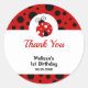 Cet autocollant de fête d'anniversaire mignon présente une coccinelle mignonne et une typographie branchée sur un arrière - plan pois noir et rouge. Montrez à vos invités combien vous appréciez leur présence et rendre la célébration encore plus spéciale avec ces autocollants de remerciement imprimables.