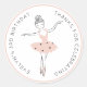 Belle ballet sur le thème des petites filles conception d'anniversaire avec une illustration douce d'une ballerine dans un tutu dansant sur scène dans une palette de couleur rose clair, argent et or.
