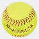 Gros plan d'un softball jaune avec couture rouge. Le texte peut être modifié.