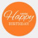 Joyeux anniversaire - simple typographie en néon orange(ff600) arrière - plan. Vivid, couleur flashy évoquant les années 1980 Cette couleur vive apportera certainement de l'acuité dans la journée spéciale de quelqu'un.Vous pouvez personnaliser cet autocollant rond avec vos propres mots