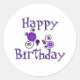 Les mots "Joyeux Anniversaire" en violet avec des fleurs violettes sur blanc sont indiqués sur cet autocollant sucré à placer sur les cartes d'anniversaire, les cadeaux ou les paquets.