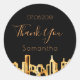 Sticker Rond Anniversaire noir or ville skyline moderne merci
