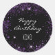 Sticker Rond Anniversaire noir violet parties scintillant pouss