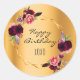 Sticker Rond Anniversaire or floral géométrique bordeaux