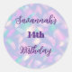 Sticker Rond Anniversaire Parties scintillant violet Nom hologr