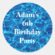 Sticker Rond Anniversaire Pool Party Blue Water Nom personnalis