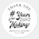 Célébrez n'importe quel anniversaire de mariage avec ces autocollants MERCI noir et blanc avec un titre en calligraphie # DES ANNÉES DE PRÉPARATION qui intègre le nombre d'années de mariage (par exemple, 50 ANS DE PRÉPARATION) et l'année de leur mariage dans le design, le titre modifiable JOYEUX ANNIVERSAIRE et personnalisé avec des noms et une date ou d'autres textes personnalisés. Utilisez-les comme autocollants de remerciement pour une fête ou comme sceaux sur des enveloppes de cartes de remerciement. Contactez le concepteur via Zazzle Chat ou makeitaboutyoustore@gmail.com si vous souhaitez que ce design soit modifié, dans une autre couleur, sur un autre produit ou si vous souhaitez des articles coordonnés.
