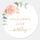 Sticker Rond Anniversaire rose or fleuri eucalyptus verdure