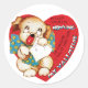 Sticker Rond Antique Valentine Coeur de chiot