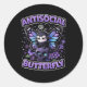 A moody, headphone-wearing butterfly perched on a glowing skull scrolls a phone amid dark florals in a whimsical gothic style.
