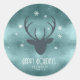 Ce sticker de bois de cerf silhouette et flocons de neige en turquoise profond sur un arrière - plan à effet texturé dans les nuances de bleu guet. Le texte optionnel "Joyeux Fêtes" a été fourni avec un modèle pour ajouter votre nom ou un autre texte. Faites une recherche ID861 à ID864 pour voir d'autres options de couleurs et d'autres produits dans cet ensemble moderne de design de Noël.