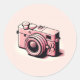 Sticker Rond Appareil photo personnalisé rose clair pour fille