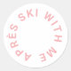 Après Ski With Me, thème de fête de bachelorette rose givré pour une soirée ski, autocollant rond. Parfait pour un voyage de ski entre filles ou pour des cadeaux de fête de bachelorette sur le thème Après Ski. Conçu pour aller avec notre collection Après All Day Rose Bachelorette.