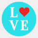 Sticker Rond Aqua Blue LOVE Moderne Élégant