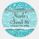 Sticker Rond Aqua Blue Parties scintillant Glam Sweet 16 Custom