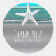 Sticker Rond Aqua & Silver Starfish Elégante Plage Mariage Fave