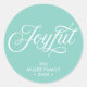 Autocollant de vacances rondes avec le mot "Joyful" dans un magnifique script cursif contre un arrière - plan d'ombre turquoise aqua clair. Fabrique un autocollant génial pour les vacances de Noël / hiver. Consultez d'autres articles de vacances ici https://www.zazzle.com/collections/holiday_christmas_new_year_cards-119015800351034065?rf=238364477188679314 Personnalisez-le en remplaçant le texte de l'espace réservé. Pour plus d'options, cliquez sur le bouton "Personnaliser". *Veuillez noter que le filigrane Zazzle qui apparaît dans l'aperçu du zoom n'apparaîtra PAS sur le produit imprimé final. © Bois de rose et agrumes
