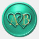 Sticker Rond Aqua Two Hearts Intertwined Monogram Wedding