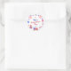 Des objets patriotiques rendus dans un effet aquarelle entourent cet autocollant 4 juillet partie. Une bannière rouge, blanche et bleue est suspendue au sommet tandis qu'un motif vedette crée un arrière - plan de fête. Célébrez avec vos amis et votre famille lors d'une fête de l'Indépendance, d'un feu d'artifice, d'un barbecue ou d'un événement communautaire. Utiliser comme sceaux d'enveloppe, comme faveurs ou comme cadeaux. Disponible avec des produits correspondants.
