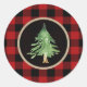Sticker Rond Aquarelle Arbre de Noël Hiver Buffle rouge Plaid