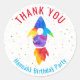 Anniversaire Rainbow Watercolor Rocket Stickers Merci de l'espace extra-atmosphérique. Autocollants d'anniversaire amusants en arc-en-ciel aquarelle avec arrière - plan étoile d'or. www.SamAnnDesigns.com