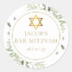 Doté d'un feuille d'aquarelle délicate et d'une élégante étoile dorée de David, ce bar chic ou autocollant bat mitzvah peut être personnalisé avec vos informations spéciales sur l'événement. Conçu par Thisisnotme©
