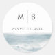 Sticker Rond Aquarelle bleu côtier Monogramme Mariage Favoriser