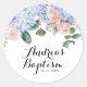 Sticker Rond Aquarelle Bleu Hydrangée et rose Roses Baptême