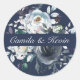 Sticker Rond Aquarelle bleu marine Floral Mariage Mariage