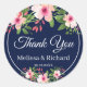 Sticker Rond Aquarelle bleu marine Merci Mariage floral