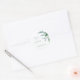 Un Sticker Arrondi Feuille Mariage classique couleur bleu aquarelle conçu avec des branches aquarelle dans les tons bleu doux vert, sur un arrière - plan blanc. Le texte comprend : Les prénoms et la date du Mariage de la mariée et de la mariée. Pour personnaliser, insérez simplement votre texte dans notre modèle facile, en remplaçant l'exemple. N'oubliez pas de consulter l'ensemble de la collection de mariage élégante Feuille Aquarelle Bleue Vert pour les cartes et accessoires correspondants.