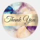 Sticker Rond Aquarelle bleu violet et Merci d'huile or