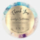 Sticker Rond Aquarelle bleu violet or huile Merci élégant