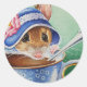 Sticker Rond Aquarelle Bonnet Bleu pour souris à temps de thé W