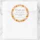 Des fleurs de chute d'aquarelle disposées dans une couronne, avec de la verdure, des tournesols, des baies et du feuillage aux couleurs rouillées de l'automne, de l'orange, du brun et des rouges. Un autocollant approprié pour une bougie d'épices citrouille parfumée ou d'autres savonnettes d'automne ou la cire fond. Peut être utilisé comme étiquette de produit ou comme étiquette de promotion commerciale.