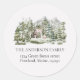 Sticker Rond Aquarelle Cabine dans la forêt de pins verts que n