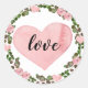Sticker Rond Aquarelle Coeur rose et Eucalyptus Vert Amour