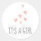 Sticker Rond Aquarelle Coeurs C'est un Baby shower fille