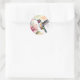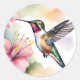 Sticker Rond Aquarelle Colibri Aux Fleurs Roses
