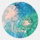 Sticker Rond Aquarelle de Dandelion bleu et vert abstrait