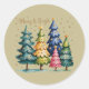 Sticker Rond Aquarelle de Noël Arbres de Noël Arbre rose