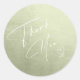 Une police de signature manuscrite combinée à une sans serif moderne est utilisée dans cette collection mariage pour donner un ton chaleureux et intime à votre mariage. L'autocollant de faveur de mariage montré ici présente élégante calligraphie "Merci" et un petit ornement de coeur sur un simple arrière - plan aquarelle en vert sage dégradé. Recherchez ID786 pour voir d'autres pièces et choix de couleurs pour cet ensemble.