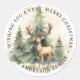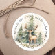 Étiquettes avec une belle aquarelle peinte d'un cerf devant les arbres de Noël, et un accueil personnalisé et votre nom. Texte par défaut "Je vous souhaite un très joyeux Noël".